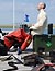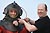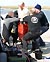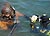 Helmtaucher tauchen im Museumshafen Probstei ab.